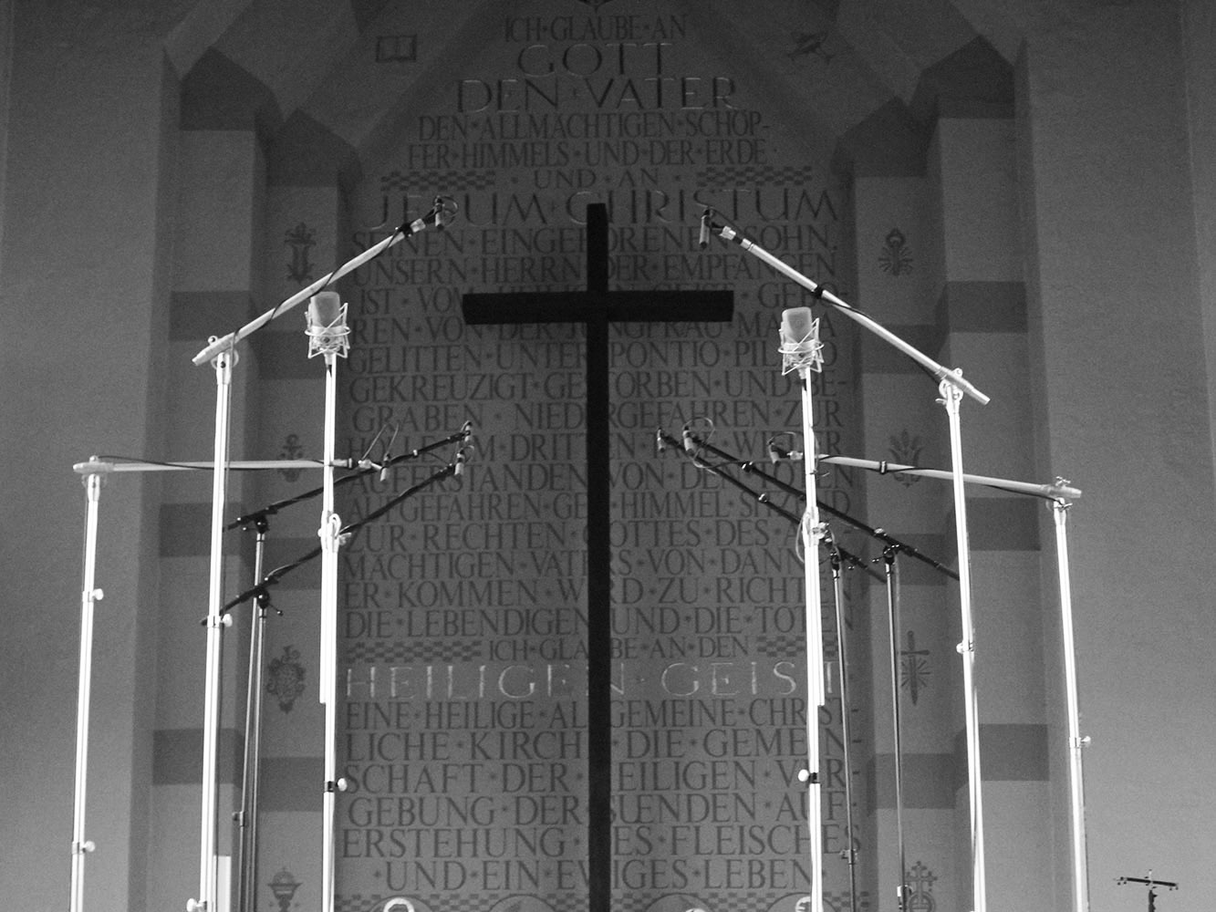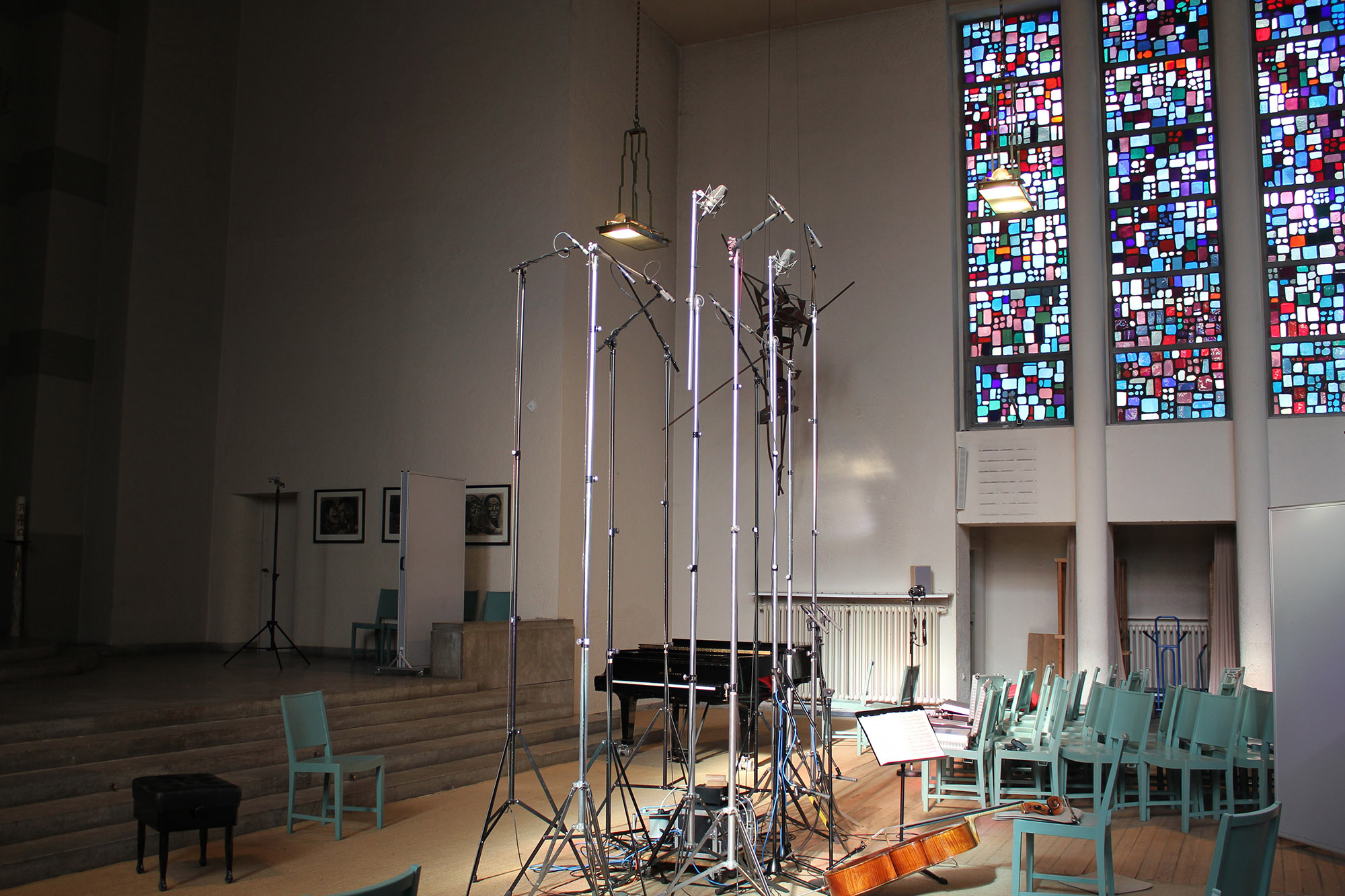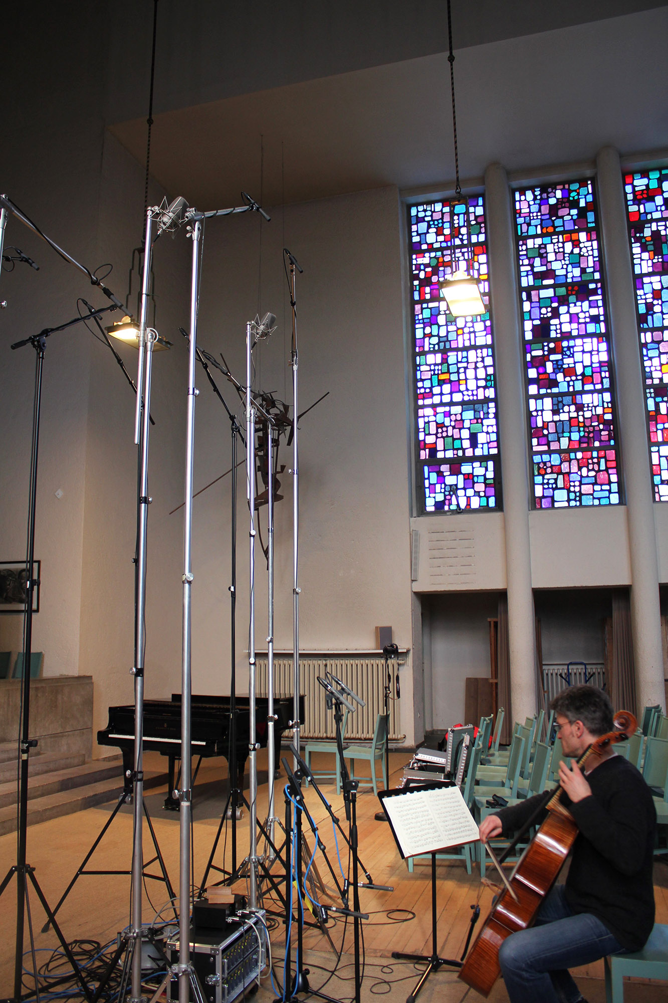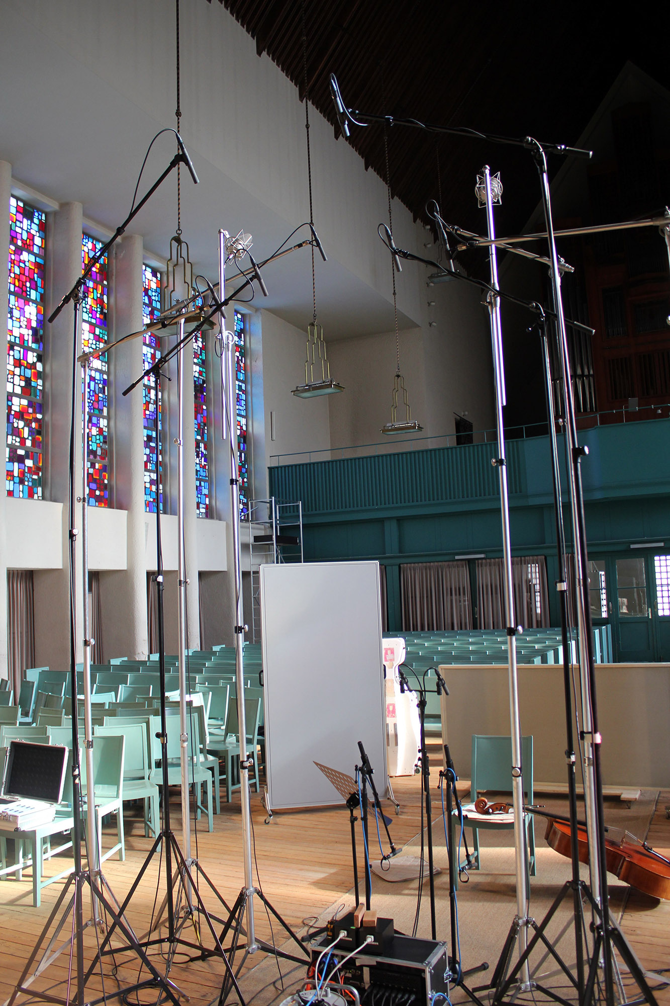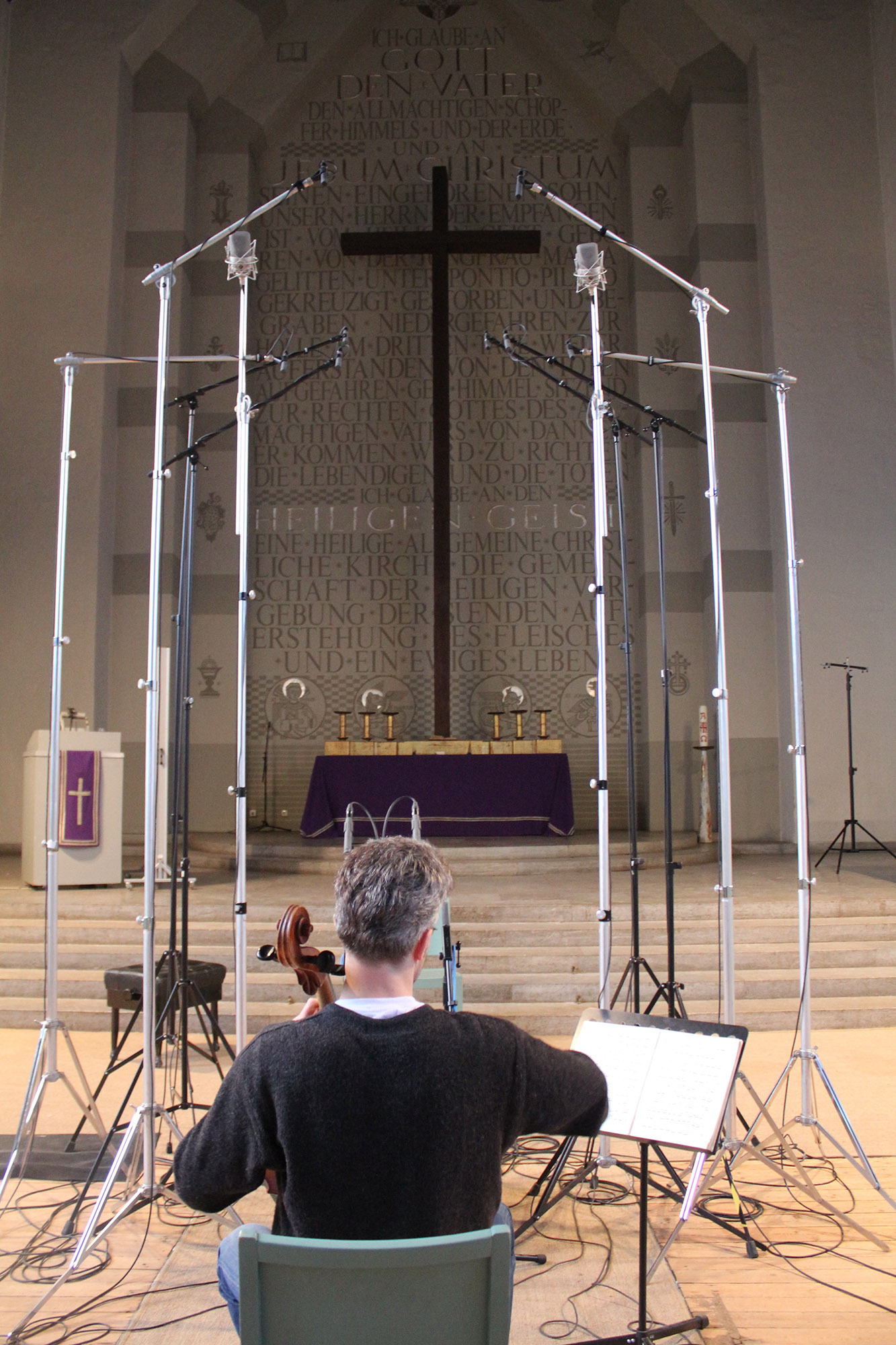 To compare the direction of the best main microphone position in the small ensemble recording. In a session recording of Cello Solo at the Jesus Christus Kirche Dahlem, Berlin on March 15, 2013. The main microphone Schoeps MK2S was set up at different direction. Recorded by RME Micstasy, Magix Sequoia 44.1kHz 24bit.Bach Cello Suite no. 1 in G major BWV 1007. Please click the following photo.You can listen it. Sound format is 44.1kHz mp3 320kbps.