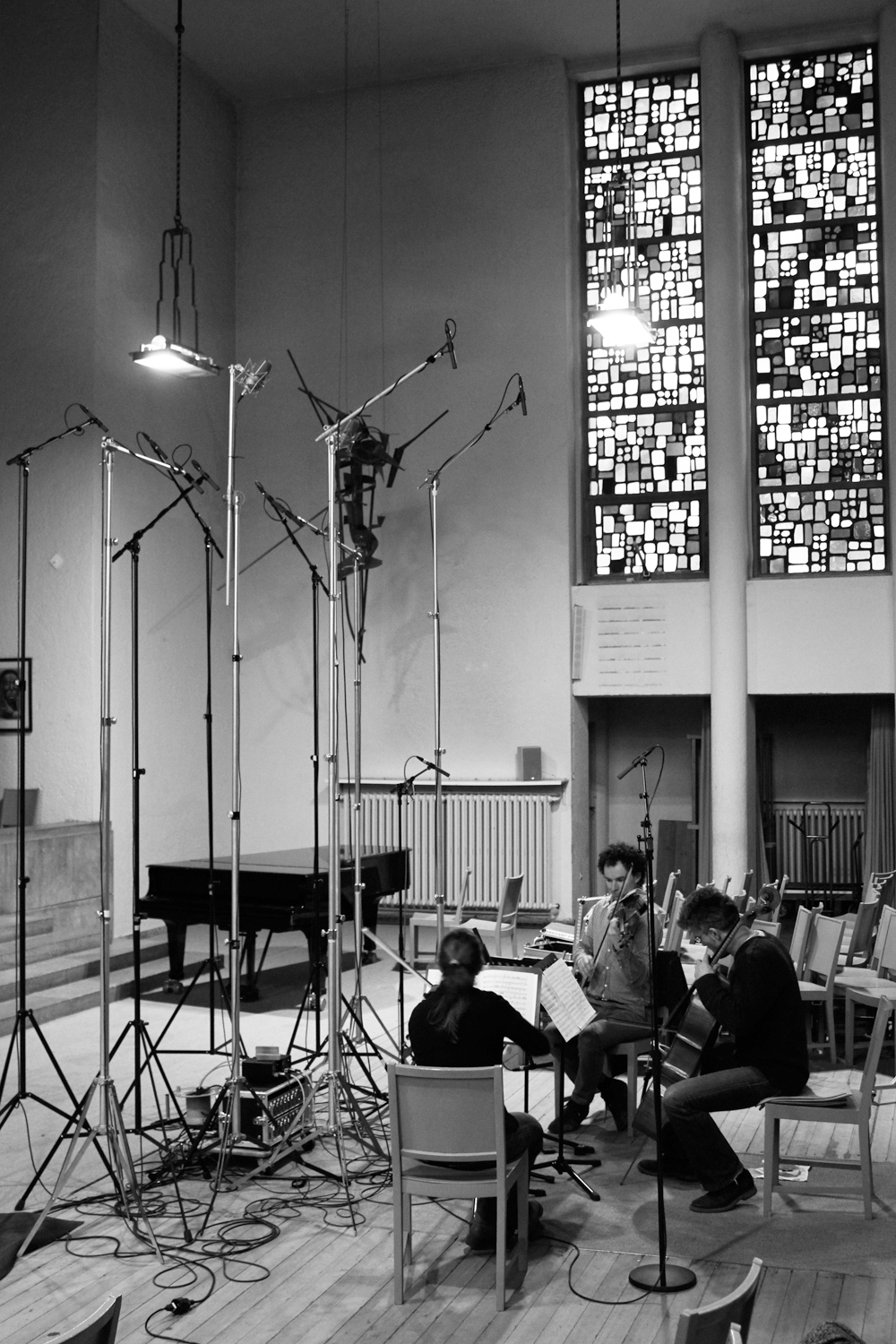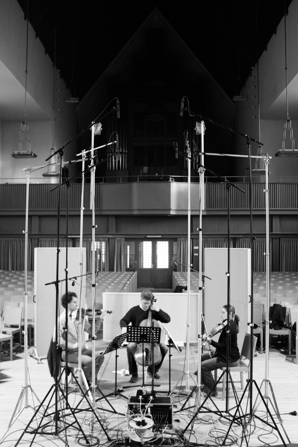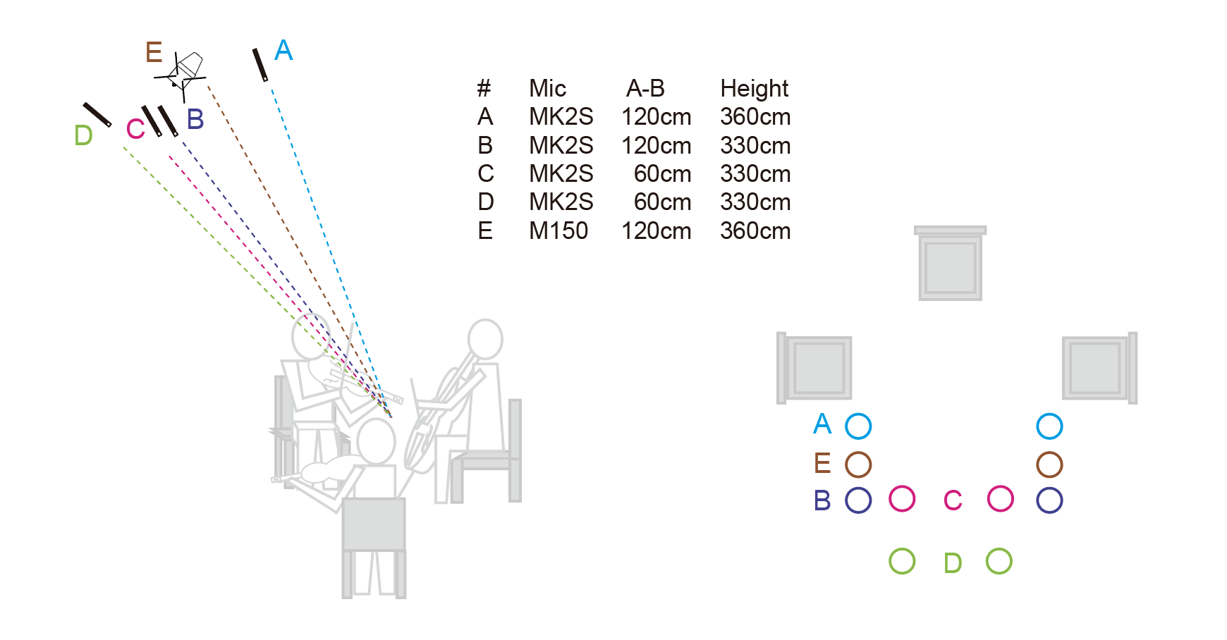 To compare the direction of the best main microphone position in the small ensemble recording. In a session recording of String Trio at the Jesus Christus Kirche Dahlem Berlin on March 15, 2013. The main microphone Schoeps MK2S was set up at different direction .Also set Neumann M150 for the diferent character. Recorded by RME Micstasy, Magix Sequoia 44.1kHz 24bit. On the Web, playback 320kbps mp3 due to internet speed reasons. Ludwig van Beethoven, String Trio No. 5 in C minor, Op. 9 No. 3, I. Allegro con spirito