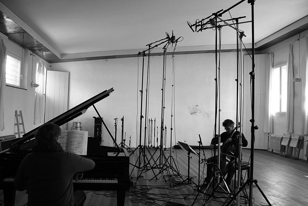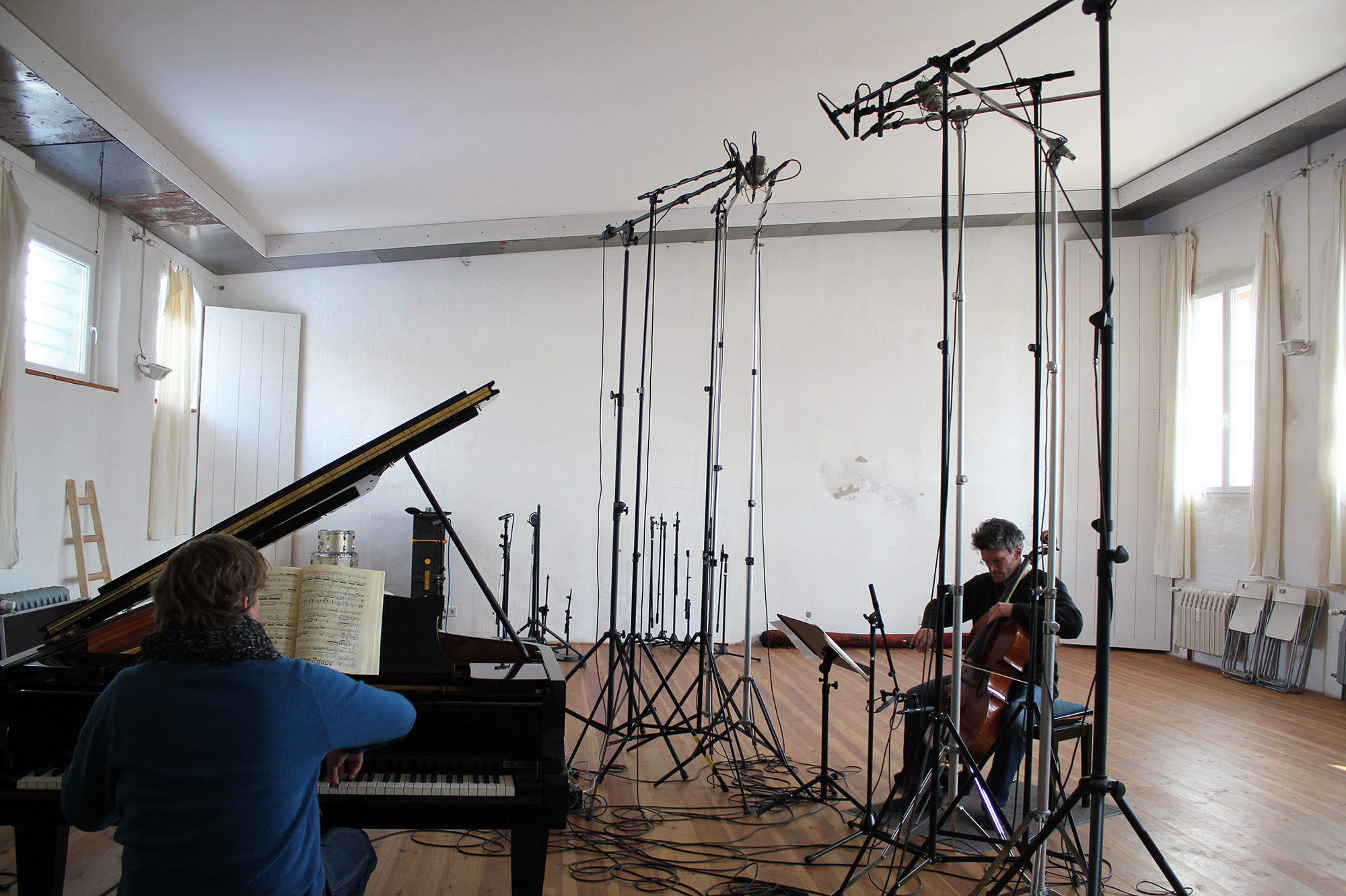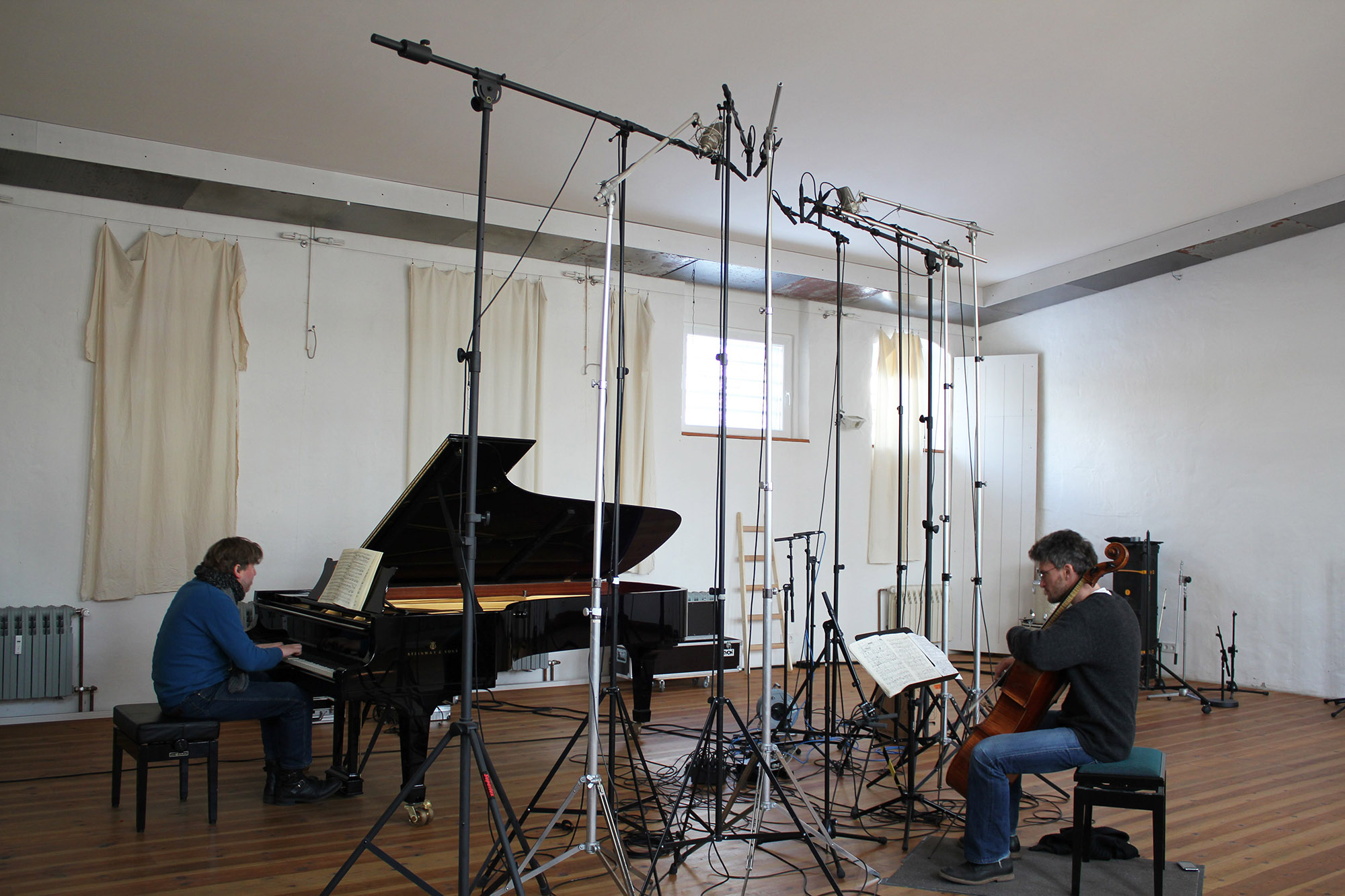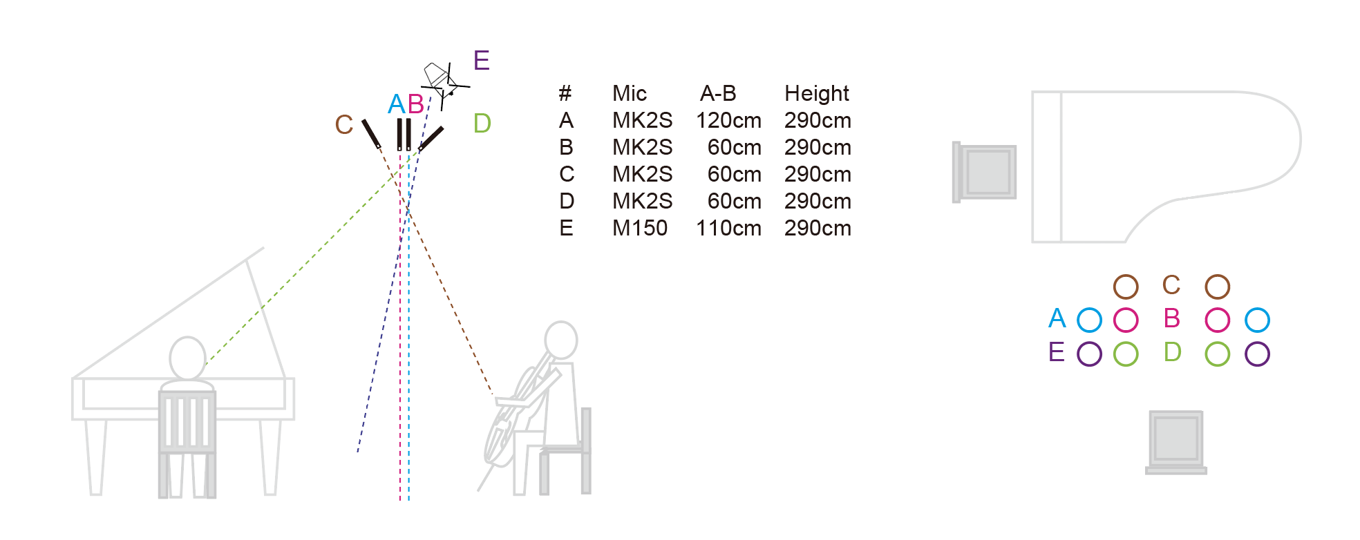To compare the direction of the best main microphone position in the small ensemble recording.In a session recording of Strings Trio,Cello Pf Duo,Cello Solo at the Weissensee Studio, Berlin on March 26, 2013.The main microphone Schoeps MK2S was set up at different direction. Recorded by RME Micstasy, Magix Sequoia 44.1kHz 24bit.Ludwig van Beethoven, Cello Sonata in C major, op.102 no.1