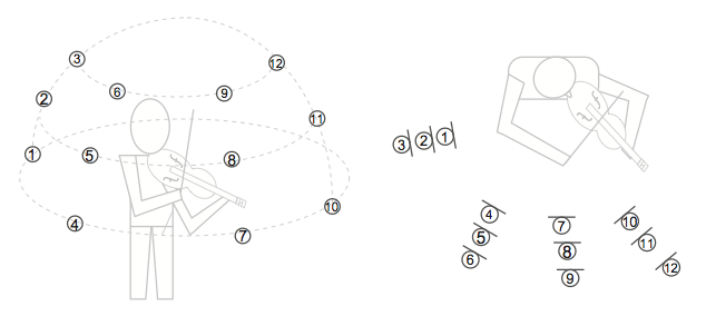 The spot microphone Neumann KM184 was set up at different 12 position.