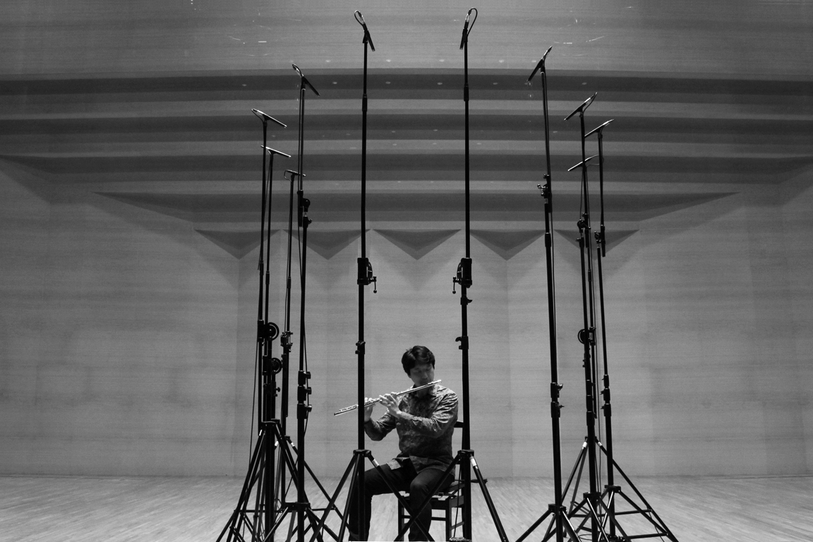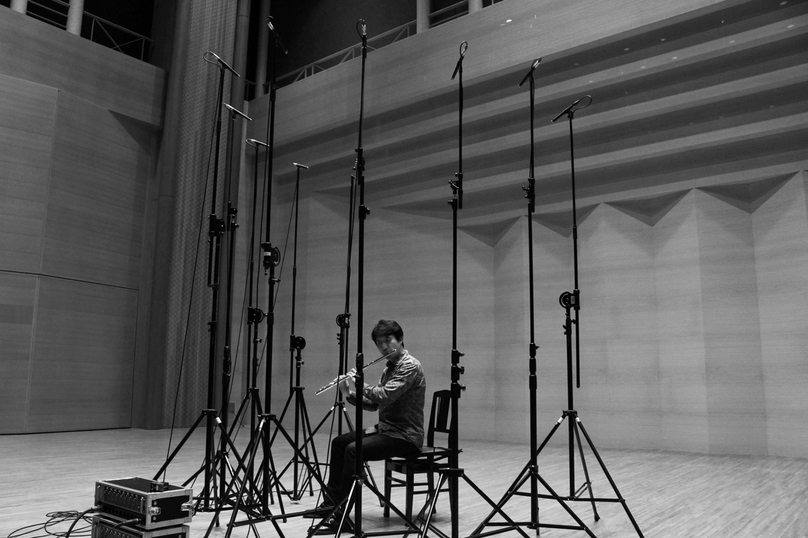 To compare the best main microphone position in the flute recording. In a experiment recording at the Hekinan Emerald Hall April, 2015. The microphone DPA 4006 was set up at different place. Recorded by RME Micstasy, Magix Sequoia 44.1kHz 24bit. Please click the following photo.You can listen it. Sound format is 44.1kHz mp3 320kbps.