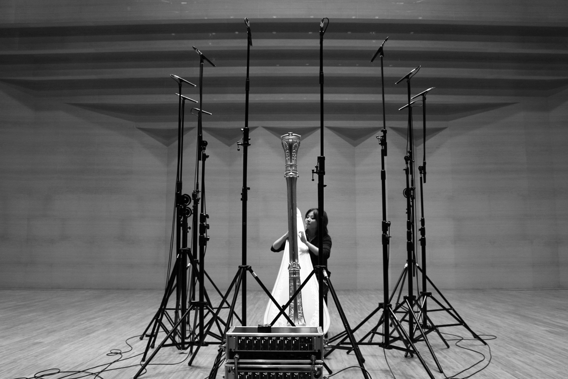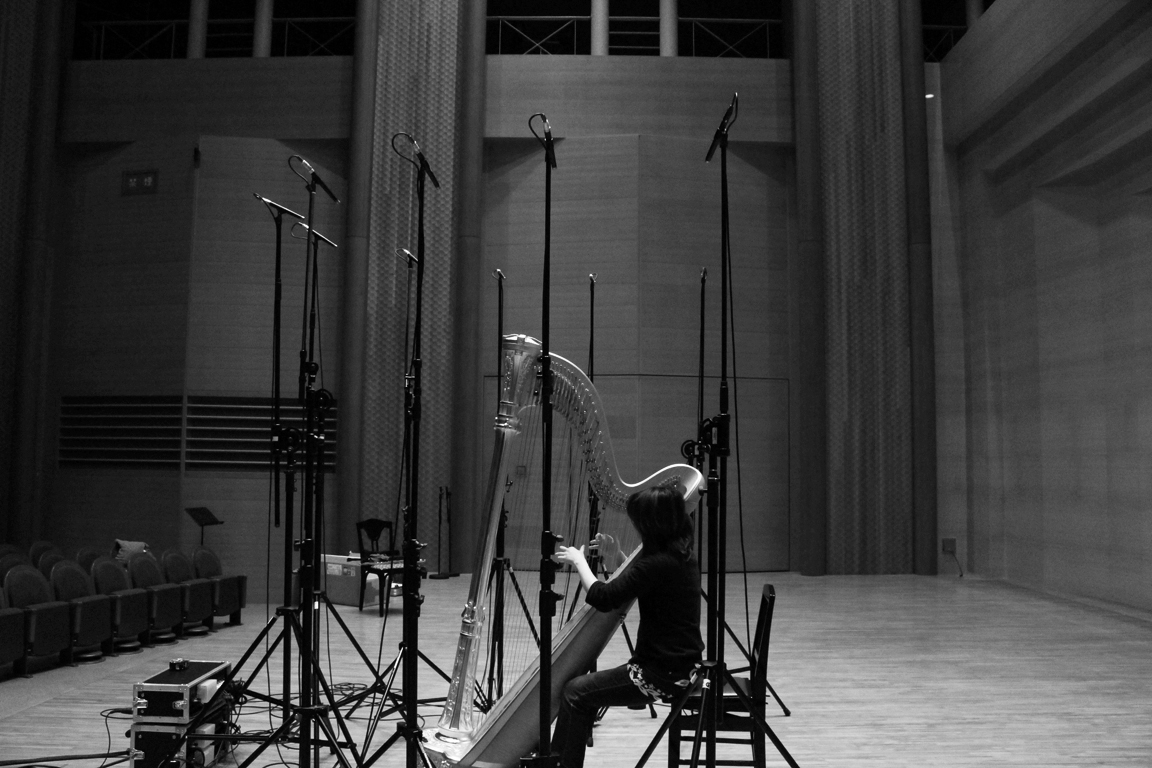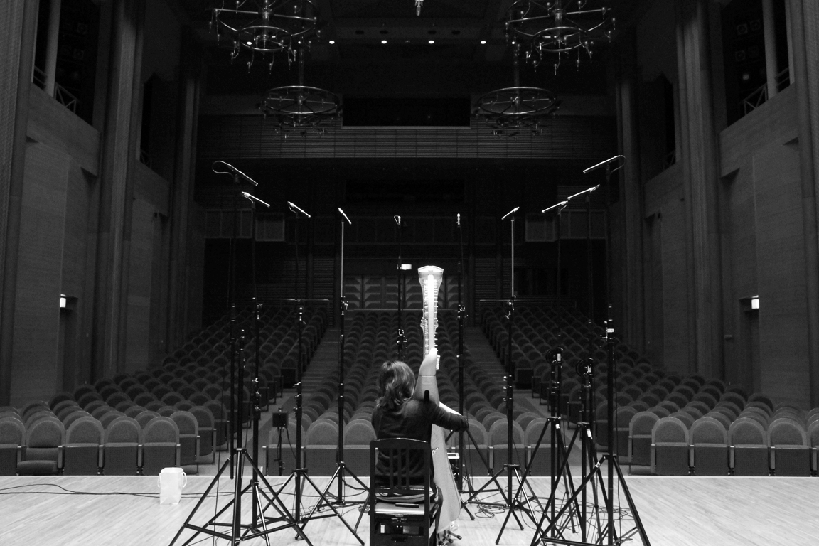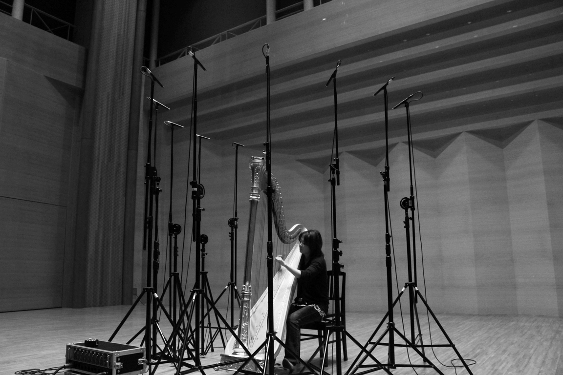 To compare the best main microphone position in the harp recording. In a experiment recording at the Hekinan Emerald Hall April, 2015. The microphone DPA 4006 was set up at different place. Recorded by RME Micstasy, Magix Sequoia 44.1kHz 24bit. Please click the following photo.You can listen it. Sound format is 44.1kHz mp3 320kbps.